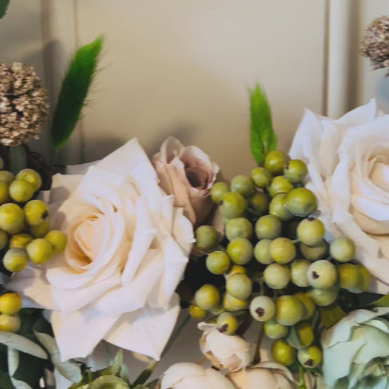 Used premium green and cream realistic roses and more